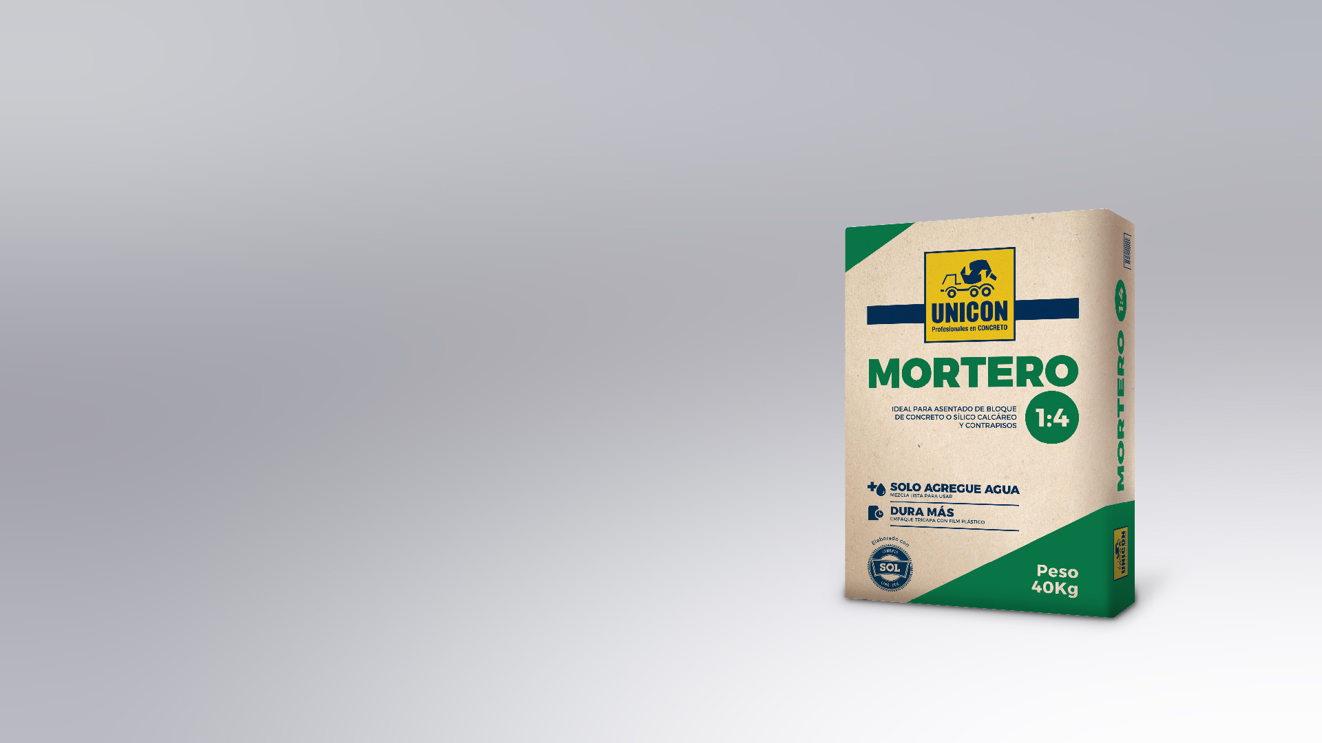 Mortero 1:4 UNICON es una mezcla seca de arena gruesa y CEMENTO SOL, listo para agregarle la cantidad recomendada de agua que se emplea para el asentamiento de bloques y contrapisos.