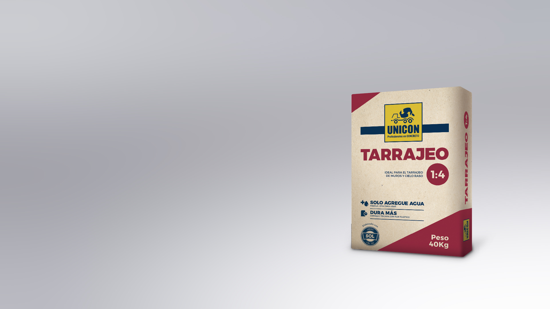 Tarrajeo UNICON es una mezcla seca de arena fina y CEMENTO SOL, listo para agregarle la cantidad recomendada de agua.